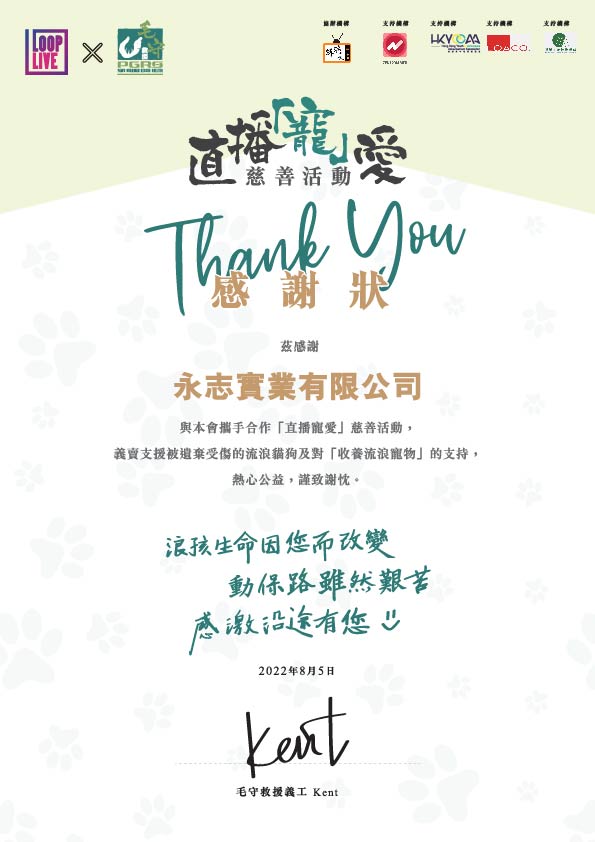 Although it is only a small donation, a small action or help, we are touched that this action could help some of the abused and abandoned animals. We truly hope that the Hong Kong public will support the adoption of animals. We believe that pets with tragic experiences are worthy of love, and they deserve to have a happy and warm home.